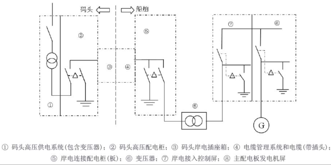 選擇性:船載裝置根據(jù)船舶情況采用發(fā)電機(jī)停電切換或不停電切換將船舶設(shè)備電力換到國(guó)家電網(wǎng)的方式