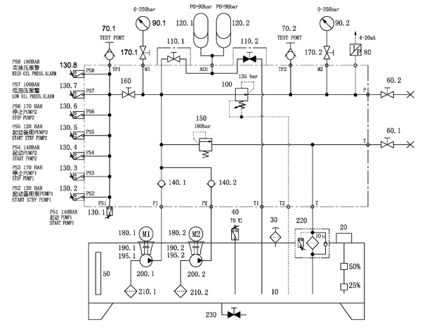 低液位報(bào)警點(diǎn):50%,25%(停泵) |