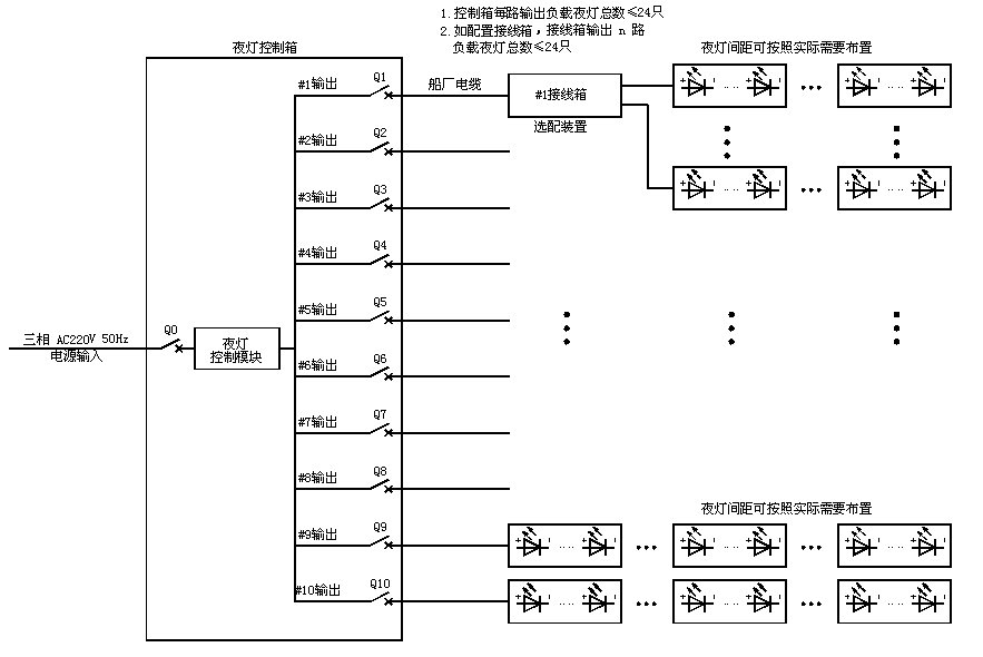 默認(rèn)10分路 (每路可直接控制夜燈或經(jīng)由接線箱控制) |