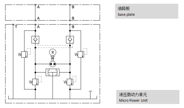 液壓微動(dòng)力單元采用柱塞泵的結(jié)構(gòu)形式,通過控制電機(jī)的正、反轉(zhuǎn)可實(shí)現(xiàn)P、T口的任意切換