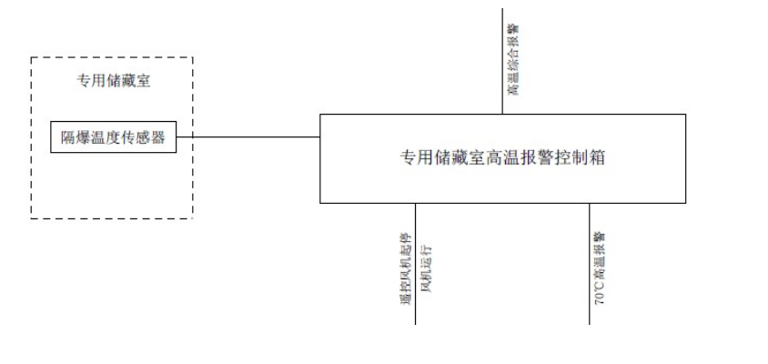 艙室高溫報(bào)警系統(tǒng)由高溫報(bào)警控制箱、隔爆溫度傳感器等組成,能對專用儲藏室進(jìn)行溫度監(jiān)測。